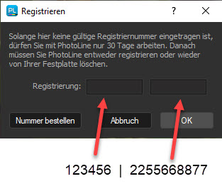 So registrieren Sie PhotoLine mit der zugesendeten Registriernummer