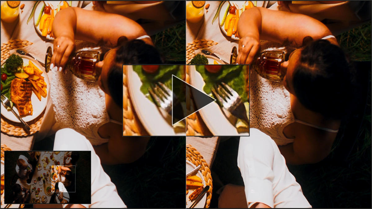 Die Grundlage von ZOOM Video #3 professional bildet die SSSP-Technologie (Super Symmetric Smart Patches), die auf fortschrittlichem Deep Learning-Verfahren (Künstliche Intelligenz) basiert und dies mit mathematischen Algorithmen verbindet. Anders als herkömmliche Interpolationsverfahren, die oft Unschärfen erzeugen, führt SSSP eine detaillierte, pixelgenaue Analyse des Quellmaterials durch. Die proprietäre Technologie bewahrt im Upscaling-Prozess nicht nur die originalen Details, sondern stellt Texturen zugleich intelligent wieder her - dies verhindert visuelle Artefakte effektiv und sorgt für eine brillante, authentische Bildwiedergabe.